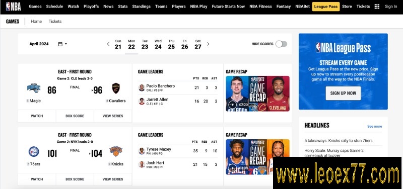 2024年NBA季後賽已於4月21日揭開戰幕,首輪比賽共有16支球隊參與,分為8場對戰進行,每場比賽最多進行7場比賽,其中先贏得4場比賽的球隊將晉級到下一輪。球迷們不僅可以在RG富遊娛樂城觀看完整的賽事,還可以查詢即時比分。此外,NBA官方網站和Yahoo運動NBA頁面也提供了賽程表、比賽日期時間以及即時比分等相關資訊,讓球迷們隨時隨地掌握最新賽事動態。